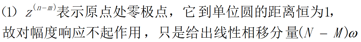 (2) 单位圆附近的零点对幅度响应的谷点的位置与深度有明显影响,当零点位于单位圆上时,谷点为零。零点可在单位圆外。