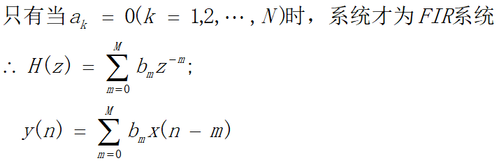 FIR系统在有限z平面没有极点,称为全零点系统,也称为滑动平均 (moving average, MA)系统。