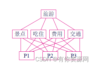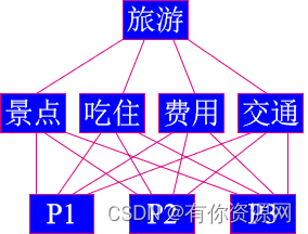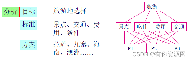 目标层O,准则层C,方案层P;