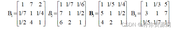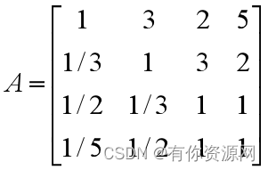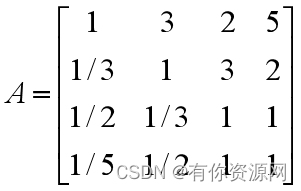 另:A=[1 2 3 4;1/2 1 2 2;1/3 1/2 1 1;1/4 1/2 1 1];