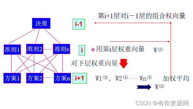 第i+1层对i-1层的一致指标CI i+1和RI i+1 一致性比率 CR=CI/RI