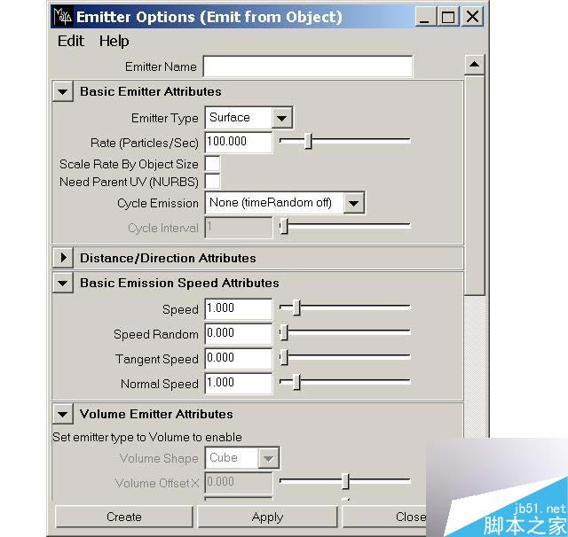 10、选择曲面,建一个从物体发射的粒子发射器。