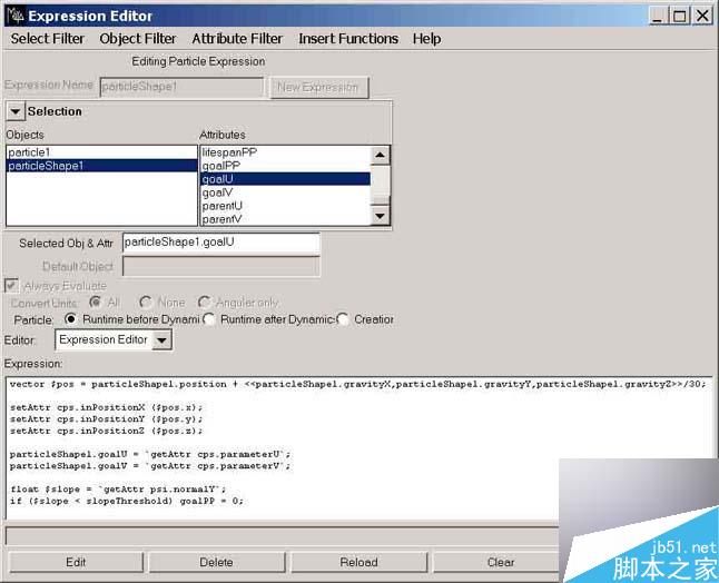 19、为粒子加一个runtime表达式,如果用的是6.0就加到runtime before dynamics里。