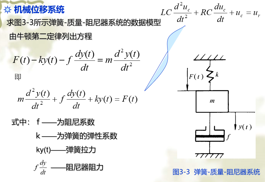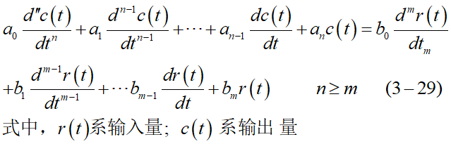系统的微分方程是在时域中描述系统(或元件)动态特性的数学模型。利用它还可得到描述系统(或元件)动态特性的其他形式的数学模型。