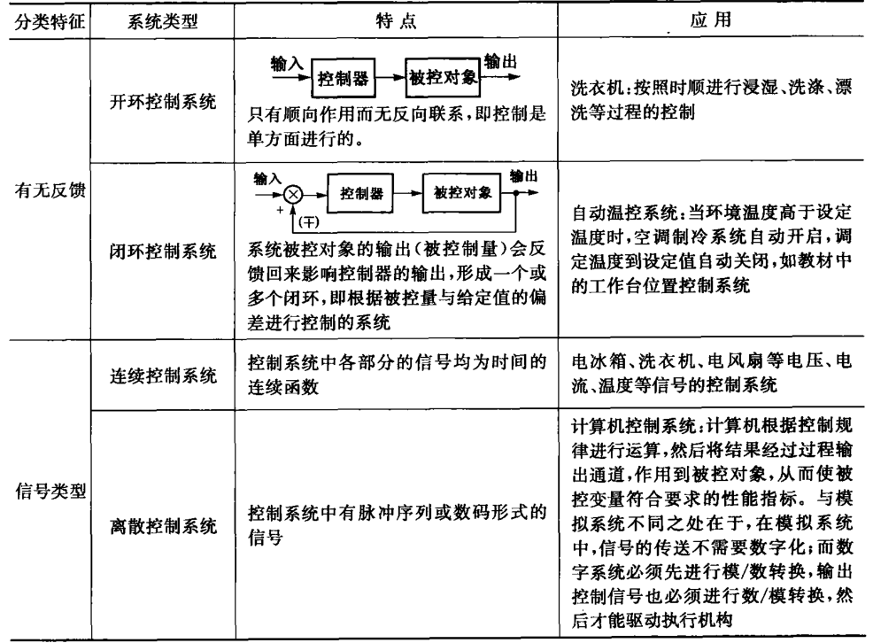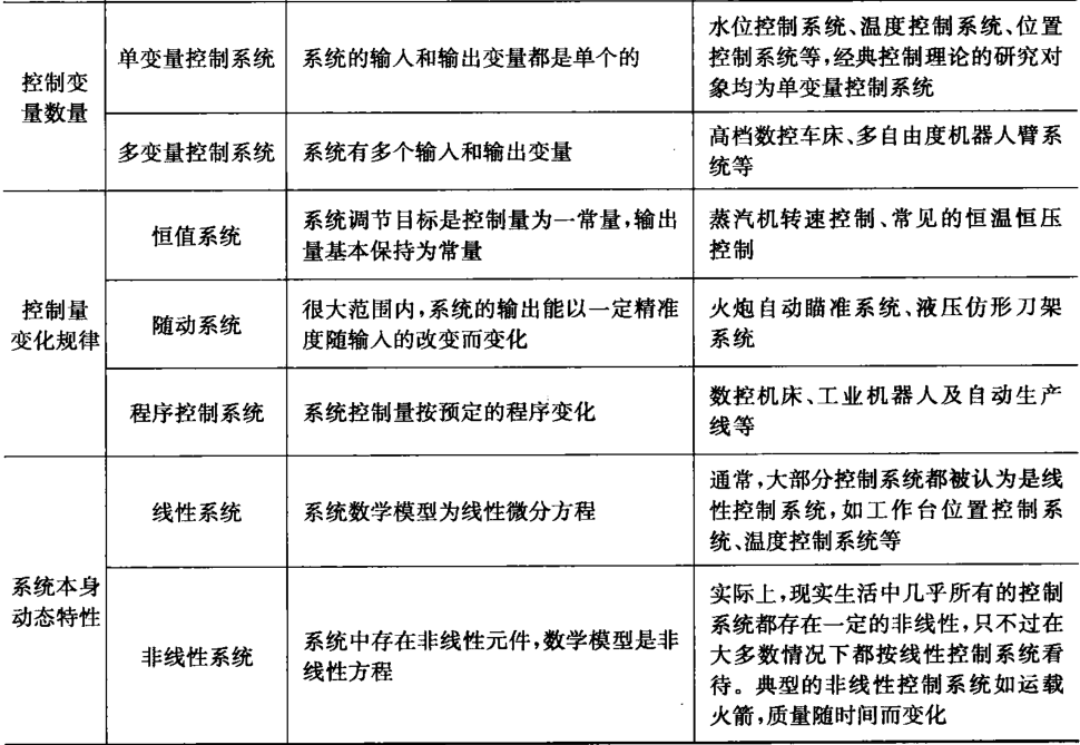 - 被控量:表征被控对象运动规律或状态的物理量,即输出量,如位置控制系统中工作台的位移。