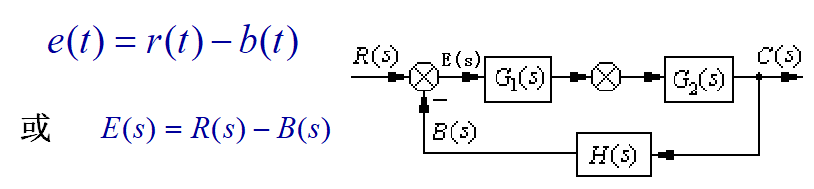 在典型方块图中,代表被控量c(t)的测量装置的输出b(t)和给定输入r(t)之差为系统的误差e(t),即: