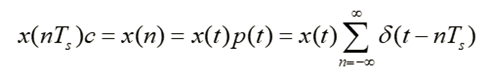若将连续信号x(t)与脉冲串序列相乘,可以得到离散信号x(nT),这是连续信号抽样的数学模型