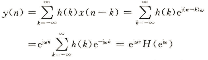 x(n)为单位抽样信号,输出为单位抽样响应h(n)。 若x(n) = e^(jwn),w为圆频率rad,那么输出y(n)包含了同频率的复正弦信号,但是受H(e^(jw))调制,称为系统的频率响应也叫系统特征值。