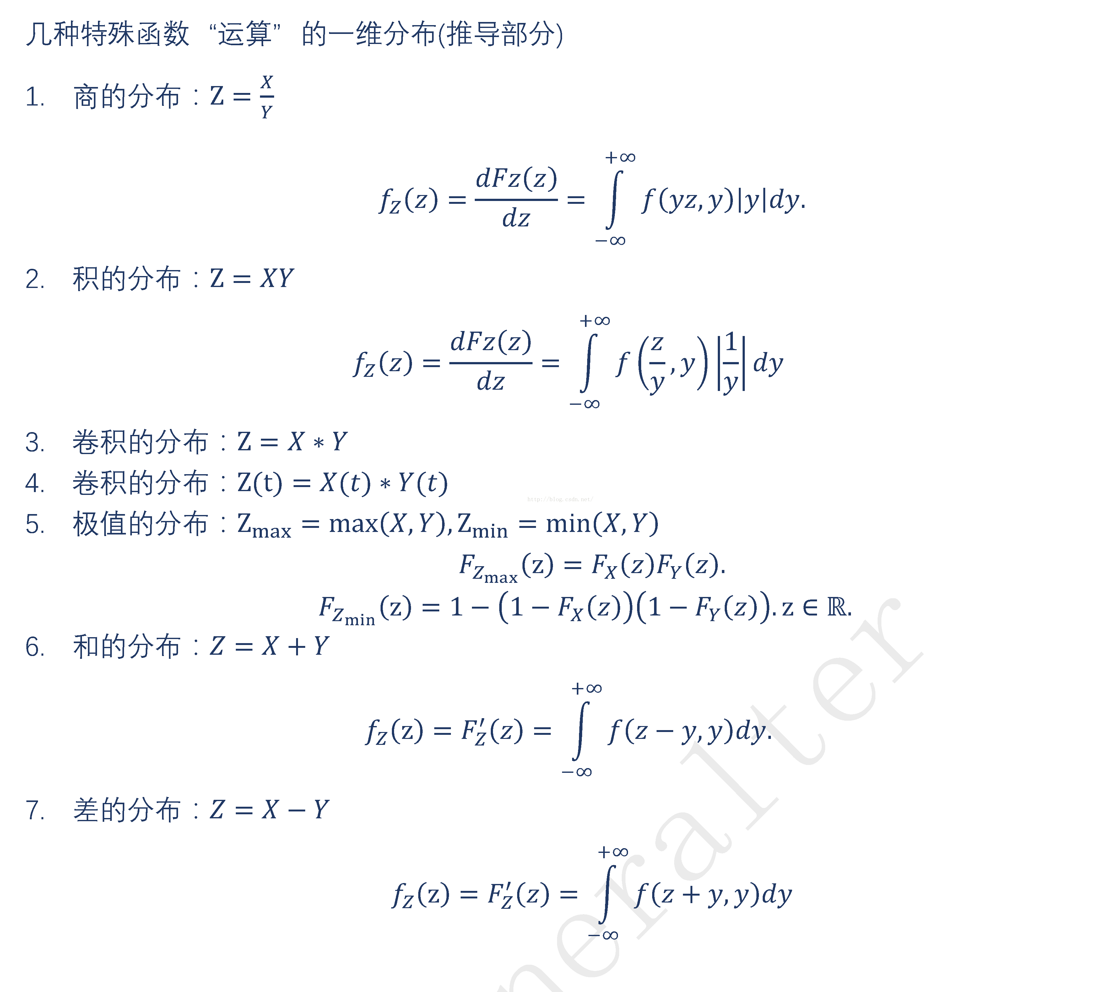 几种特殊函数“运算”的一维分布(推导部分)