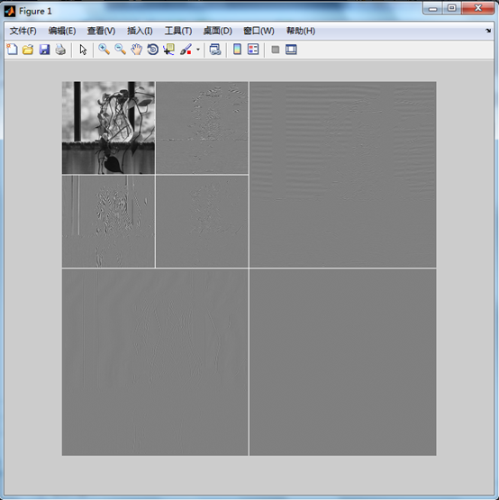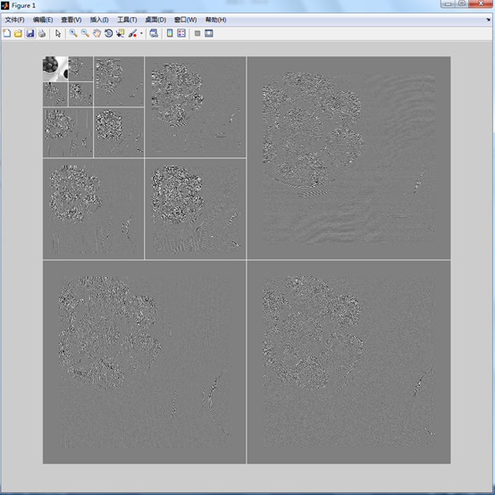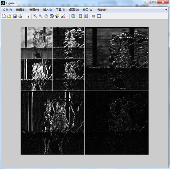 figure , wave2gray ( nc , S , -6 ) ; % 显示处理后的小波系数