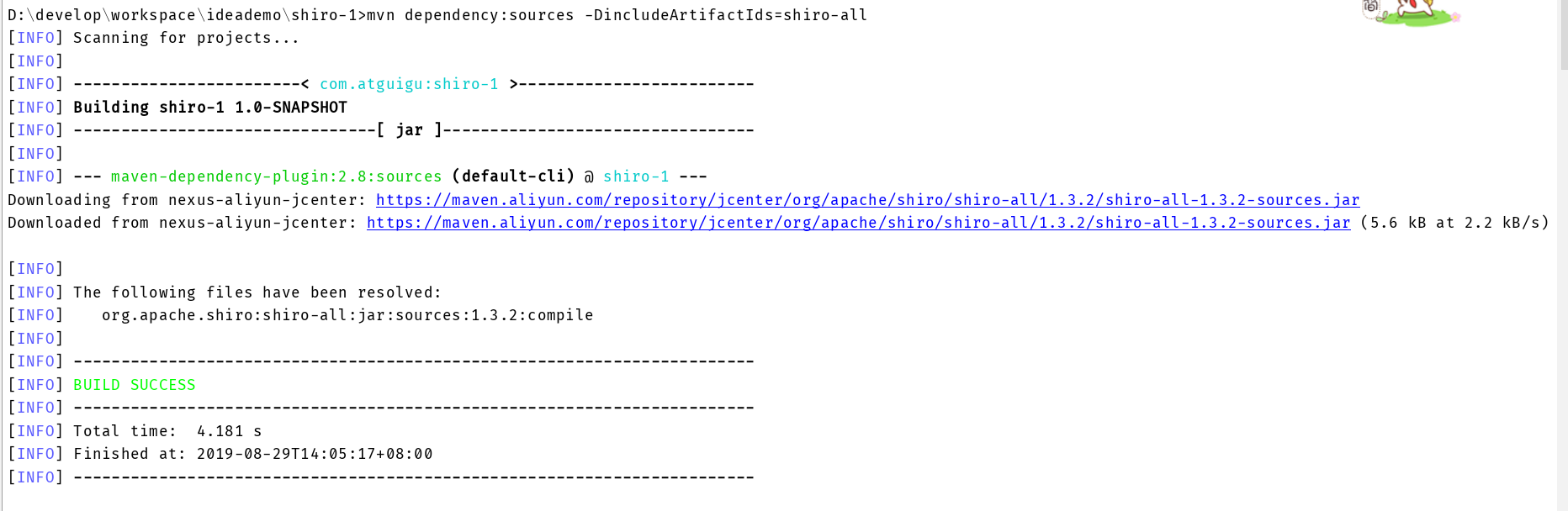 这个源码包是用 mvn dependency:sources -DincludeArtifactIds=shiro-all 命令下载回来的,如下图所示: