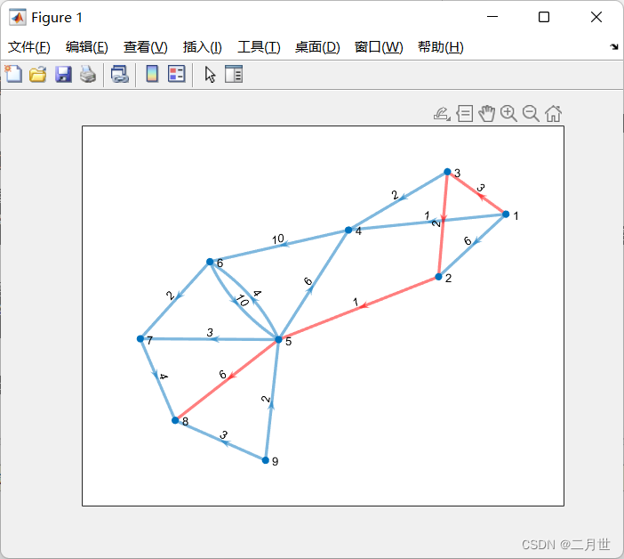highlight(myplot, P, 'EdgeColor', 'r') %对这个变量即我们刚刚绘制的图形进行高亮处理(给边加上r红色)