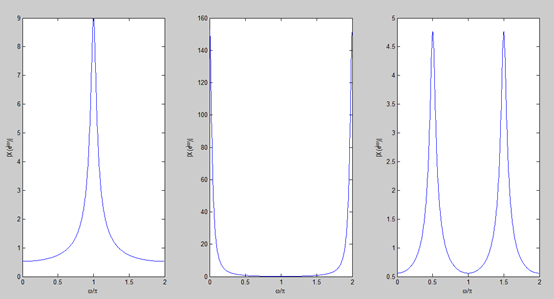 subplot(1,3,i);plot(w/pi,abs(H)); %绘制系统幅频响应曲线