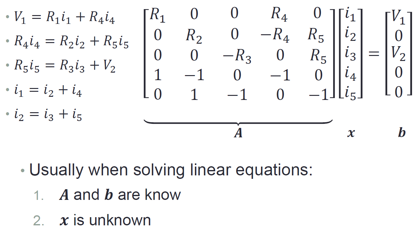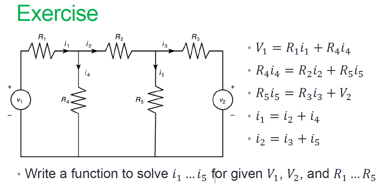 A=[R1 0 0 R4 0;0 R2 0 -R4 R5;0 0 -R3 0 R5;1 -1 0 -1 0;0 1 -1 0 -1];