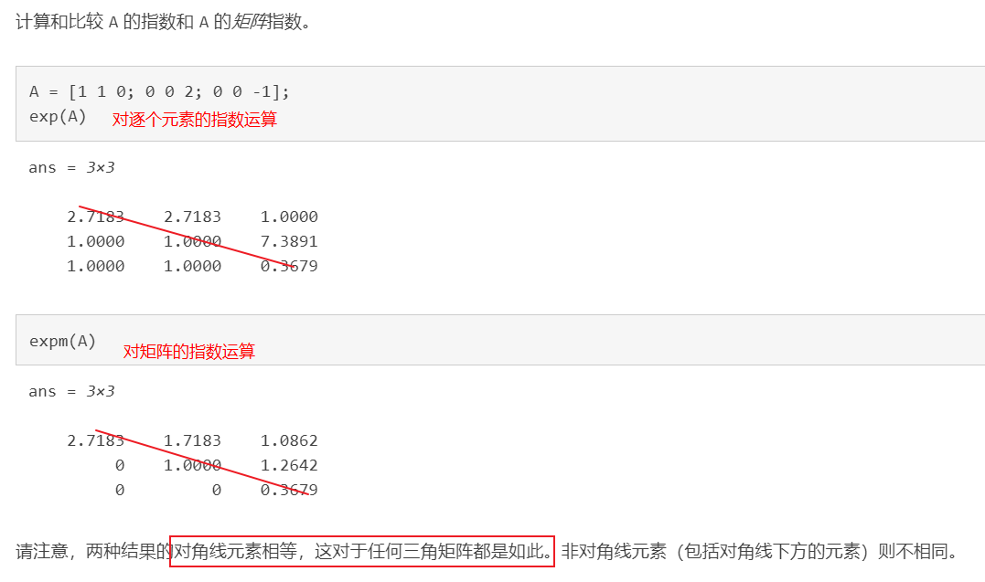 Y = expm(X) 计算 X 的矩阵指数。如果 X 有一组完整的特征向量 V 和对应特征值 D,[V,D] = eig(X),则expm(X) = V*diag(exp(diag(D)))/V;