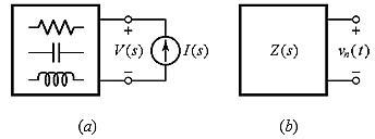 图1:(a)无源单端口电路 (b)自然(或无源)开路响应vn(t)。