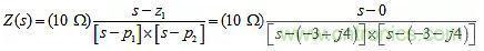 当s=0时,其值为零;当s=-3±j4时,它具有复共轭极点对。可以用根来表达它,即: