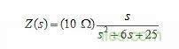 图2:Z(s)=(10Ω)s/(s2+6s+25)的幅度图。(通过在虚轴上计算|Z|获得的分布曲线图显示出单端口电路的交流响应。)