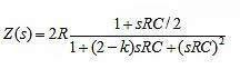 其中a和φ是适合的系数,取决于t=0时存储在电容中的能量。其结果是持续振荡,也称为无阻尼振荡(因此称为ω0)。物理上,运算放大器注入单端口电路的能量等于端口电阻消耗的能量,这让电容以某种乒乓方式交换能量。