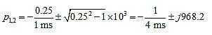 其中ζ称为阻尼比,ω0称为无阻尼固有频率。设D(s)=0,可以得到极点对: