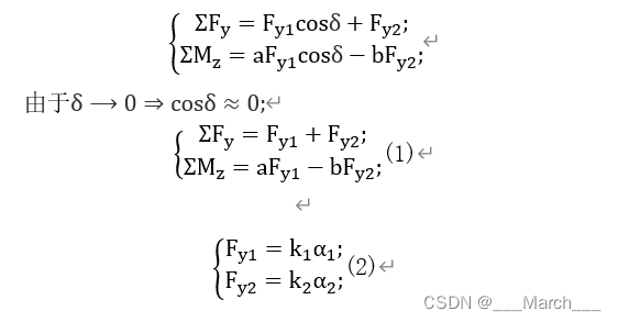 汽车二自由度模型推导: