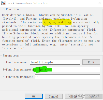 1.除了系统默认的t,x,u,flag以外,如果你增加了新的输入变量,那么要在S-function中声明。