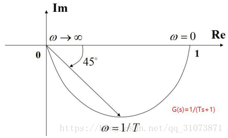例如,一阶系统的Nyquist图为: