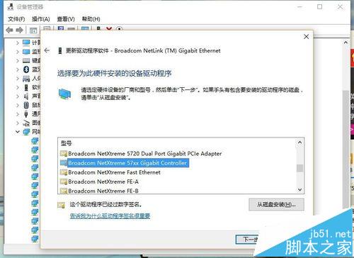 6、在驱动列表中选择 NetLink NetXtreme 57xx Gigabit Controller双击,直到显示安装完成,如图所示。