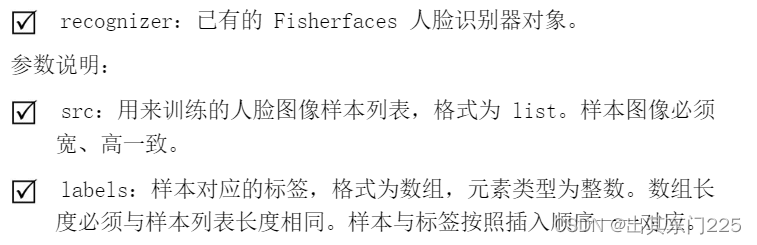 (1)通过 cv2.face.FisherFaceRecognizer_create()方法创建 Fisherfaces 人脸识别器,其语法如下: