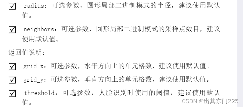 recognizer = cv2.face.LBPHFaceRecognizer_create(radius, neighbors, grid_x, grid