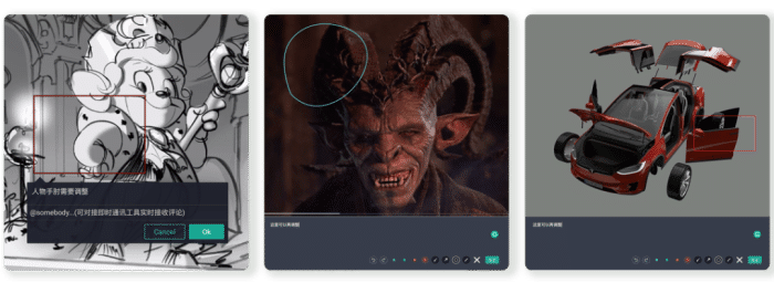可直接在图片、视频和3D模型上进行标注,即时反馈
