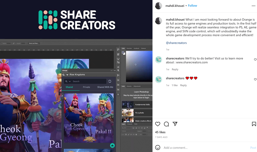 Share Creators研发的Orange智能数字资产管理系统和Passion智能项目管理系统,正在被全球众多知名游戏美术设计师所使用,让我们看下游戏美术大神们是如何评价这套智能数字资产管理系统的吧: