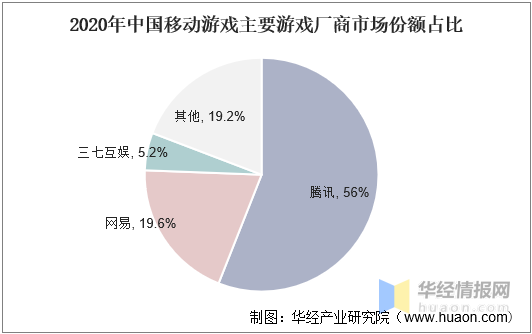 2020年中国移动游戏主要游戏厂商市场份额占比