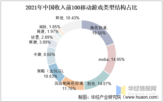 2021年中国收入前100移动游戏类型结构占比