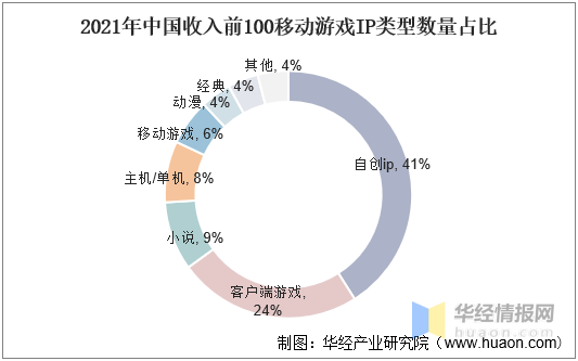 2021年中国收入前100移动游戏IP类型数量占比