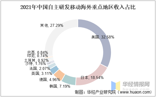 2021年中国自主研发移动游戏海外重点地区收入占比