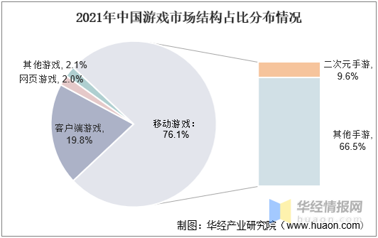 2021年中国游戏市场结构占比分布情况