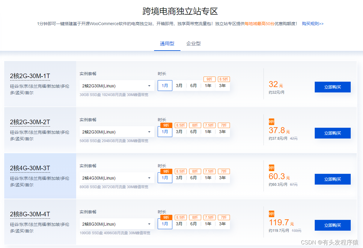 高配置、大带宽,极具性价比!独立站专区最高提供50台配额!购买linux系统的轻量应用服务器,方便快速搭建跨境电商独立站。