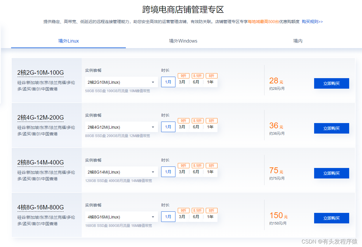 2、最高30Mbps峰值带宽,极具性价比,跨境电商客户专享优惠价格,下单满额送大额礼券。