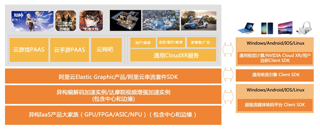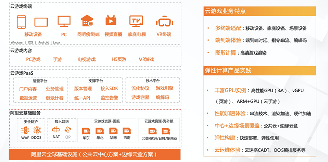 对于云端算力来讲,阿里云解决了云端渲染、串流以及编解码问题,并通过全系列GPU产品来满足云手游、端游、VR乃至企业级视觉渲染场景的需求。