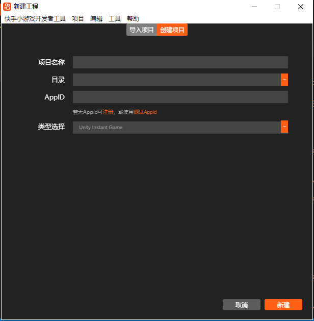 登录开发者账号选择创建项目 输入【appid】选择【unity类型】,在项目内导入快手json,点击预览即可