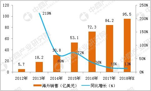 其中,2016年移动游戏用户规模约3.85亿人,同比增长7.5%,增速自2013年以来持续下滑,其主要原因有两点:1)用户基数已经非常大,人口红利消失;2)产品多、杂且同质化。 而人口红利消失是最核心原因。2016年,我国移动游戏用户数为3.85亿人,游戏用户总数为4.17亿人,移动网民数为6.75亿人。从渗透率分析,国内移动游戏用户数占国内游戏用户总数的92%,占移动用户总数的57%,手游玩家对整体游戏玩家的渗透率已经接近饱和,人口红利不再。 无论是客户端,还是移动端,游戏的用户规模均已经达到了瓶颈,中国游戏市场规模想要进一步的提升需要在精细运营、产品创新、产业融合、国际化发展等方面寻找突破口。 四、国产游戏外销,寻找更蓝海的市场 国内移动游戏人口红利逐渐消失,行业集中度提升,中小游戏公司面临巨大的生存压力。行业内“不出海便出局”成为共识,众多中小型游戏公司开始寻求更为蓝海的国外市场。2008年,国产网游海外销售收入7000万元,2016年国产网游海外销售收入增长至72.3亿元,GAGR达78.5%。 2012-2018年中国自主研发网游海外销售收入