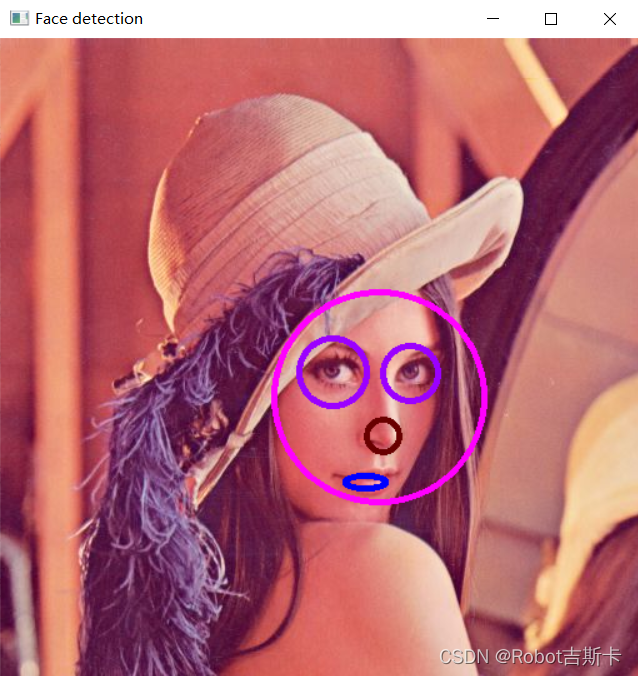 ellipse(frame, center, Size(faces[i].width / 2, faces[i].height / 2), 0, 0, 360, Scalar(255, 0, 255), 4);