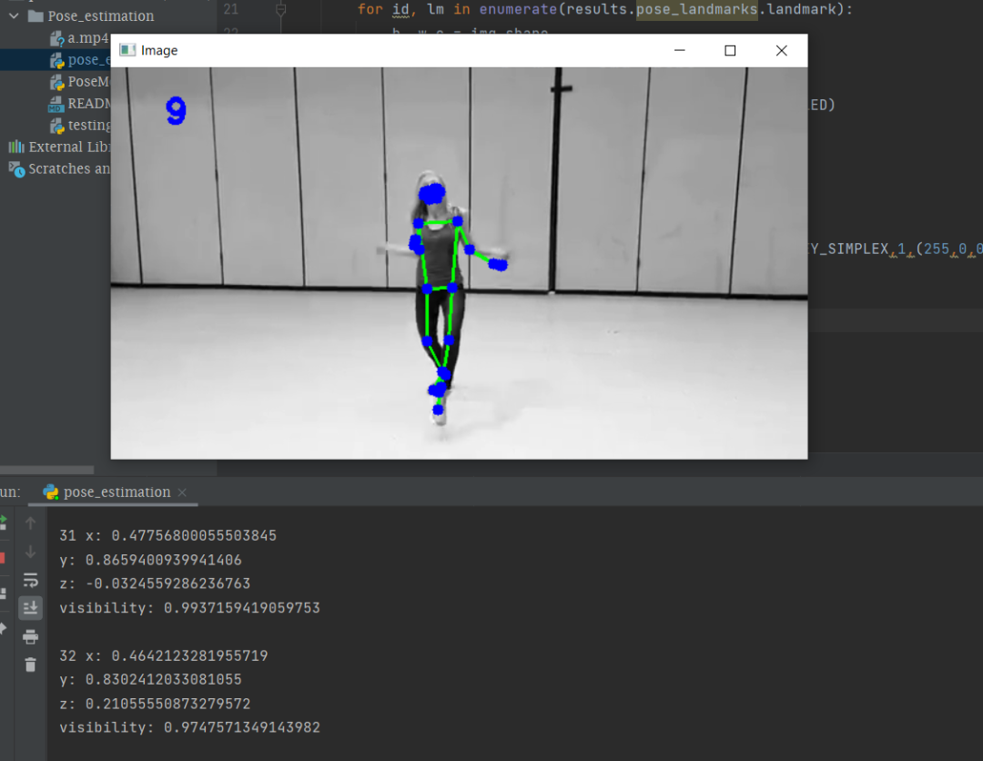 终端部分中的输出是mediapipe检测到的界标。