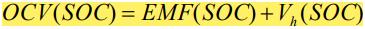 这是论文中给的关于SOC-OCV的计算公式,可知OCV=EMF+Vh。