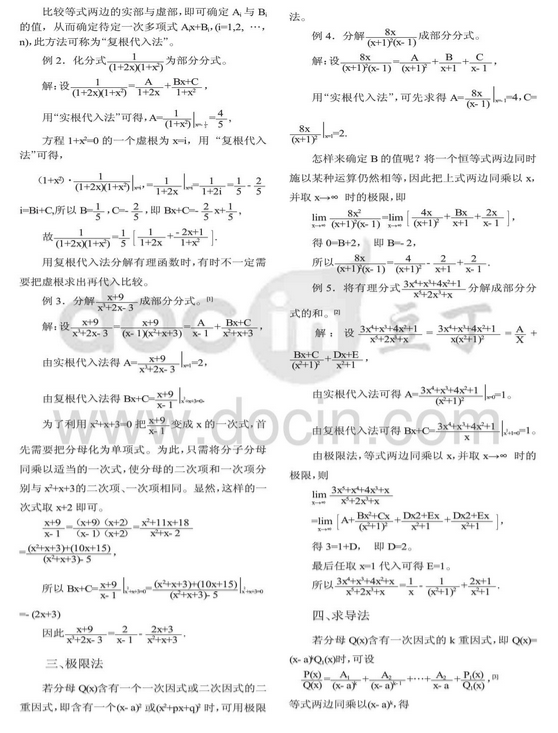 有理函数分解成部分分式的几种方法