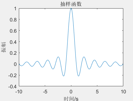 xlabel('时间/s');ylabel('振幅'); title('抽样函数')