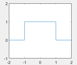 产生一个幅值为1,宽度为2,相对于t=0点左右对称的矩形波信号,该函数的横坐标范围由向量t决定,是以t=0为中心向左右各展开width/2的范围,width的默认值为1