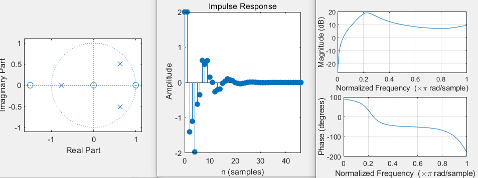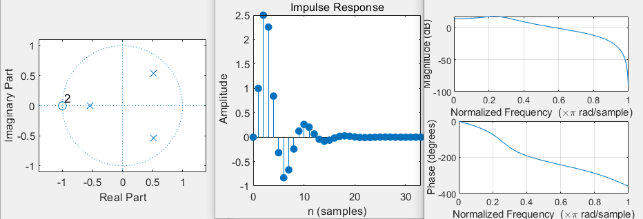 b =[0 1 2 1];a =[1 -0.5 -0.005 0.3];