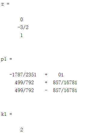 p =-0.5000 + 1.3229i, -0.5000 - 1.3229i, -1.0000